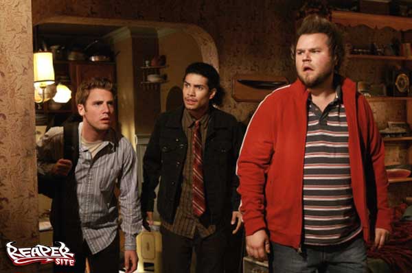 Reaper and its characters are copyright ©2007 The CW and the show's respective producers. This website is not authorized by the CW Network. Page copyright ©2007 KryptonSite, unless the material is noted as coming from someplace else or being by an individual author. Reaper stars Bret Harrison, Tyler Labine, Missy Peregrym, Valerie Rae Miller, Rick Gonzalez, Ray Wise, Donovan Stinson, Andrew Airlie, and other people we'd probably do a better job of remembering if the show actually had opening titles. |