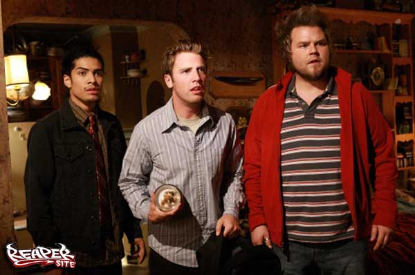 Reaper and its characters are copyright ©2007 The CW and the show's respective producers. This website is not authorized by the CW Network. Page copyright ©2007 KryptonSite, unless the material is noted as coming from someplace else or being by an individual author. Reaper stars Bret Harrison, Tyler Labine, Missy Peregrym, Valerie Rae Miller, Rick Gonzalez, Ray Wise, Donovan Stinson, Andrew Airlie, and other people we'd probably do a better job of remembering if the show actually had opening titles. |